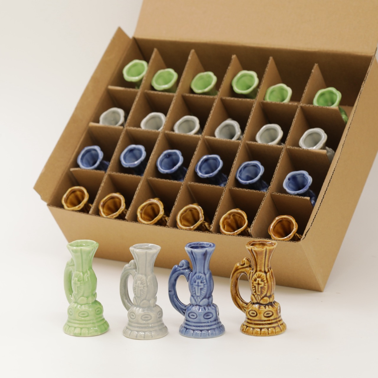 Подсвечник керамический кувшин, набор из 24 шт. Цвета микс в коробки. Цена указана за упаковку 24 шт. 80 руб за штук.