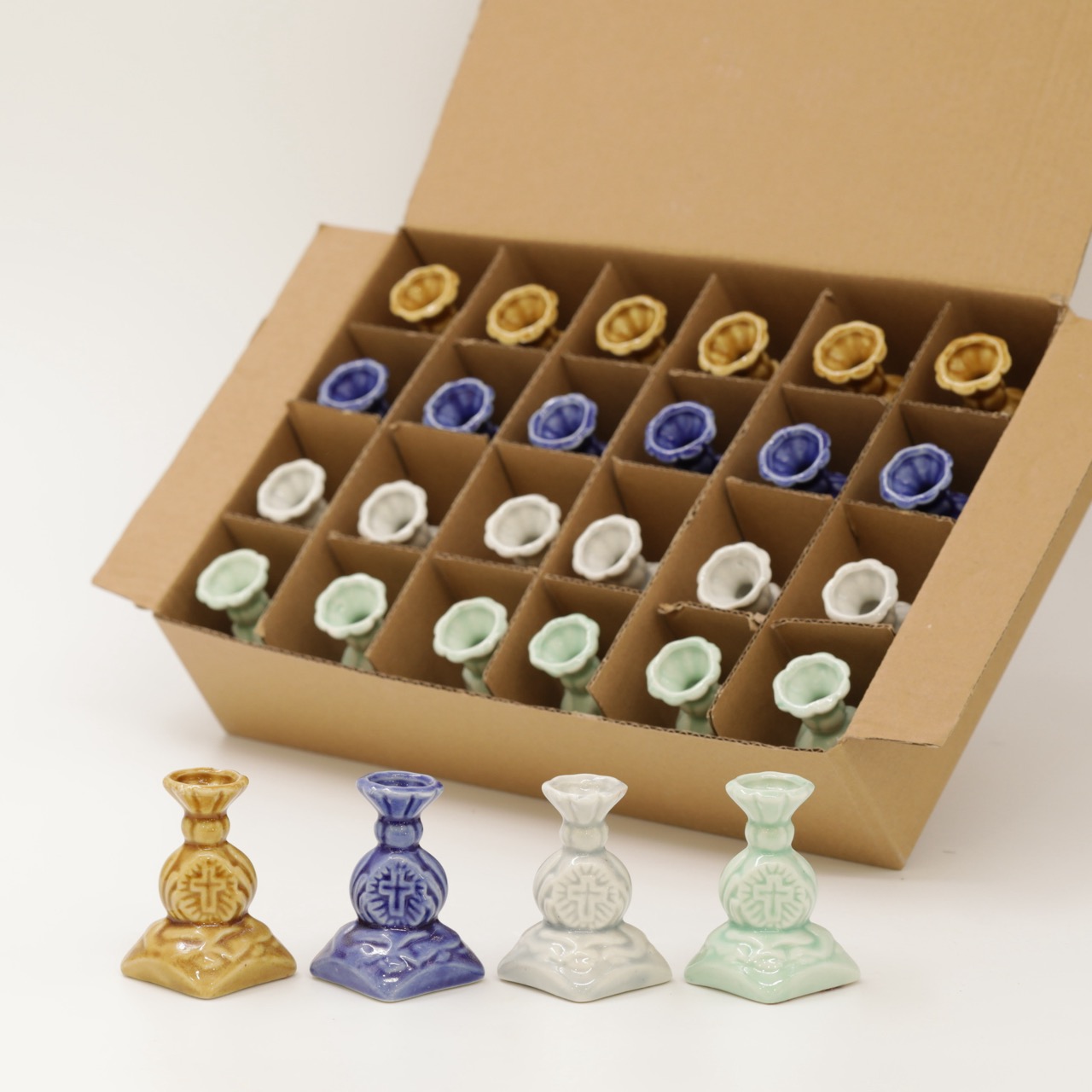 Подсвечник керамический ваза, набор из 24 шт. Цвета микс в коробки. Цена указана за упаковку 24 шт. 80 руб за штук.